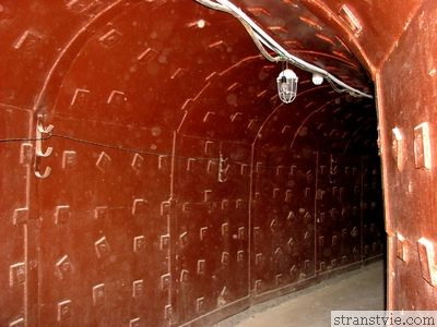Чтобы спрятать то, что находится под ним. А там находится огромный секретный бункер «Таганский». Дом над бункером построили не только для того, чтобы замаскировать секретный объект, уходящий под землю на глубину 60 метров. Монолитный кусок бетона на поверхности нужен еще и для безопасности. Если вдруг случится ядерный взрыв, лже-дом примет основную силу проходящей здесь взрывной волны на себя и защитит подземный бункер от разрушения. Секретный объект был построен в 1954 году для одного из подразделений Министерства связи СССР. Затем бункер «Таганский» стали оснащать всем необходимым на случай ядерного удара со стороны Америки. Здесь собрали запасы продуктов, питьевой воды, топлива, установили системы очистки воздуха и воды, собственные источники энергии. Всего этого добра хватило бы на несколько месяцев для 2500 счастливчиков, которых мог вместить бункер в случае ядерного удара. Бункер «Таганский» долгое время поддерживался в отличном состоянии. Для этого на объекте ежедневно трудились 600 человек. Кстати, продукты с истекшим сроком годности исправно менялись на новые. Но в конце 80-х угроза ядерной войны ослабела. И бункер «Таганский» стал постепенно превращаться для министерства связи в лишнюю обузу. Работников уволили. Все, что было ценного, вывезли в неизвестном направлении. От былого великолепия остались только массивные бронированные двери (такие с петель просто так не снимешь) и стальная обшивка стен (местами основательно покоцанная). В 2006 году «Таганский» постигла учесть многих госучреждений – он был выставлен на торги. По неофициальным данным нынешним владельцам он достался за 65 млн. рублей. По поводу продажи секретного военного объекта коммерческой фирме в то время шутили: Директор-сотруднику: «Ты с ума сошел! Когда я говорил, что нам нужен большой офис под Москвой, я не это имел в виду!». Но надо отдать нынешним владельцам бункера должное: они по мере сил восстанавливают историческое подземелье и показывают его интересующимся. Спустились под землю и мы. По обыкновенной лестнице. Правда, не совсем обыкновенной. Здесь обратный отсчет этажей, Ободряющие надписи по пути.Последний, он же минус 18-й этаж: И сразу рядом с лестнице автомат с газированной водичкой. Жалко, что не работающий. В огромном зале когда-то был зал заседаний. Это сейчас здесь серо и уныло. А раньше тут собиралось высшее начальство, поэтому и окружающая обстановка была на уровне. В следующем зале владельцы бункера устроили любопытный музей. Здесь можно обнаружить весьма интересные предметы, которыми были когда-то напичканы все подобные сооружения, средства связи, Средство для составления отчетов, рапортов или доносов, все экспонаты этого музея, можно и даже нужно трогать руками, надевать на себя…и пробовать в действии. Дальше опять идем гулять по бесконечным тоннелям. Если прислушаться, можно услышать гул поездов метро. Рядом с бункером на той же глубине залегает станция Таганская. Раньше поезда можно было не только услышать, но и увидеть, но это показалось руководству метрополитена небезопасным, и смотровые окошки заделали железными листами. Впрочем, говорят, где-то в недрах бункера еще остались неперекрытые проходы между бункером и метровскими тоннелями. И не только метровскими. Москва подземная со всеми своими сооружениями потянула бы на целый от